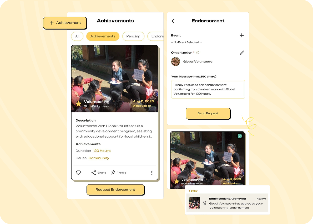 Engage with organizations, volunteer, and highlight your leadership impact.